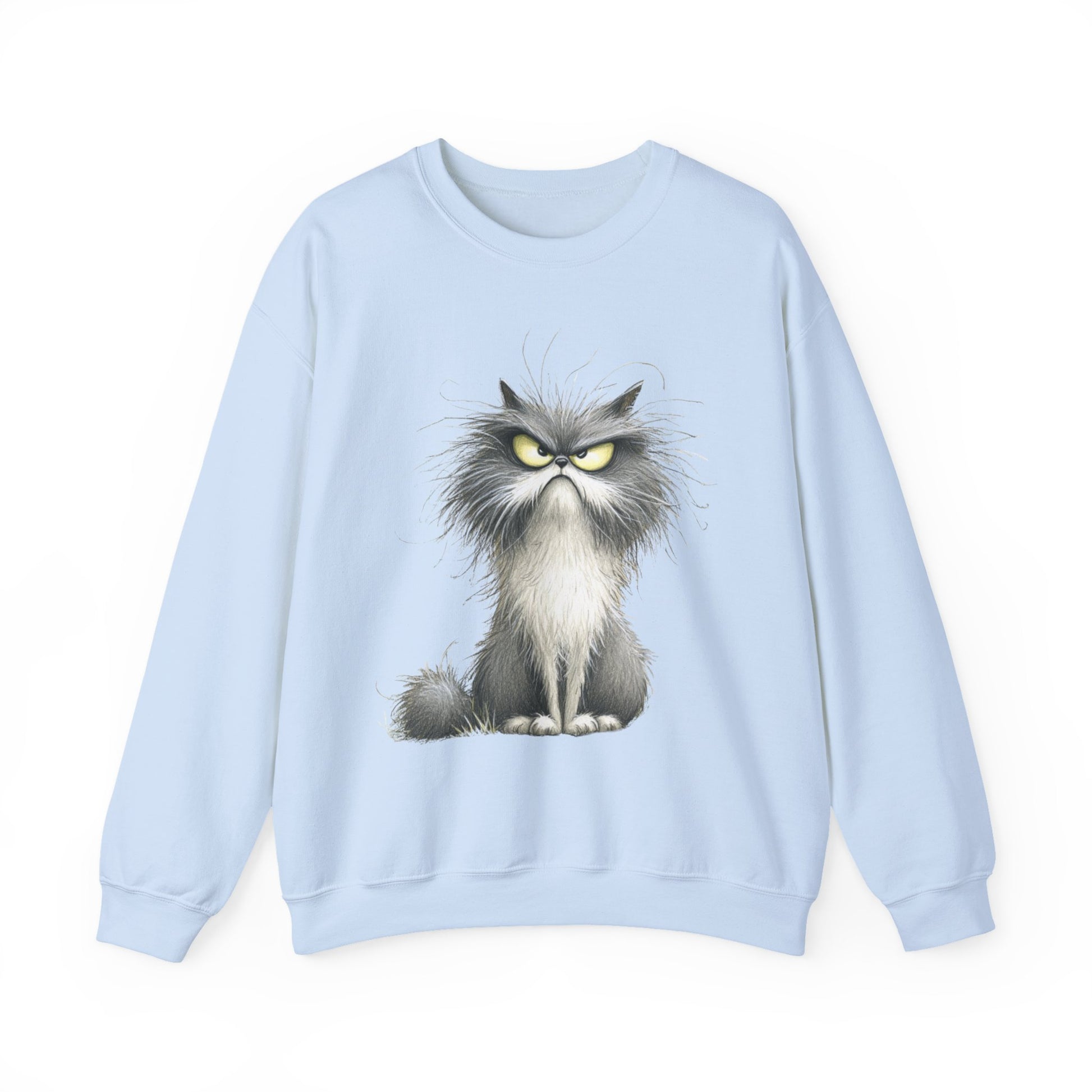 Just a long-haired grey and white cat, thoroughly frazzled and visibly over it. No words, no explanation, only the unmistakable energy of someone who showed up out of obligation and regrets every second of it. Perfect for silent solidarity on bad-attitude days.