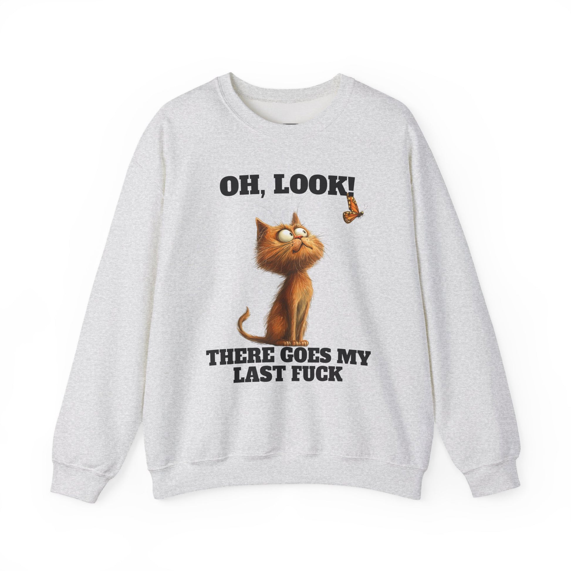 There it goes: soaring majestically away. This sweatshirt captures that magical moment when you finally stop pretending to care. Featuring a frazzled feline who’s officially out of patience (and fucks), it’s soft, cozy, and cathartic to wear.