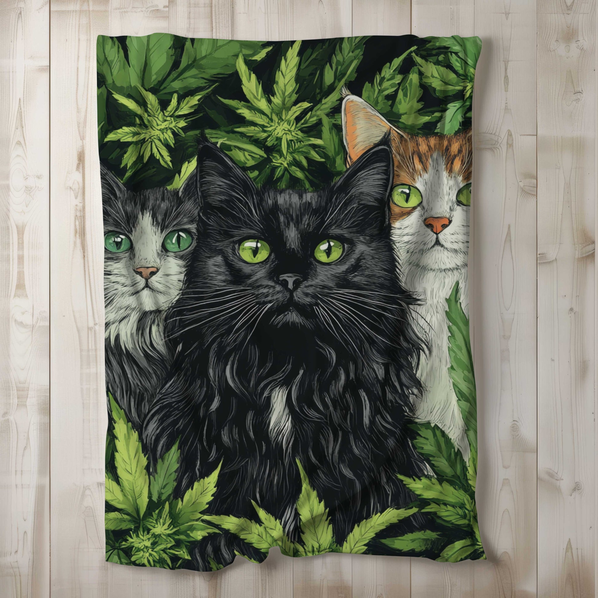 This full-sublimation blanket showcases three gloriously unbothered cats vibing in a cloud of premium green. Perfect for anyone who enjoys soft blankets, soft lighting, and soft memories of what they were supposed to do today.