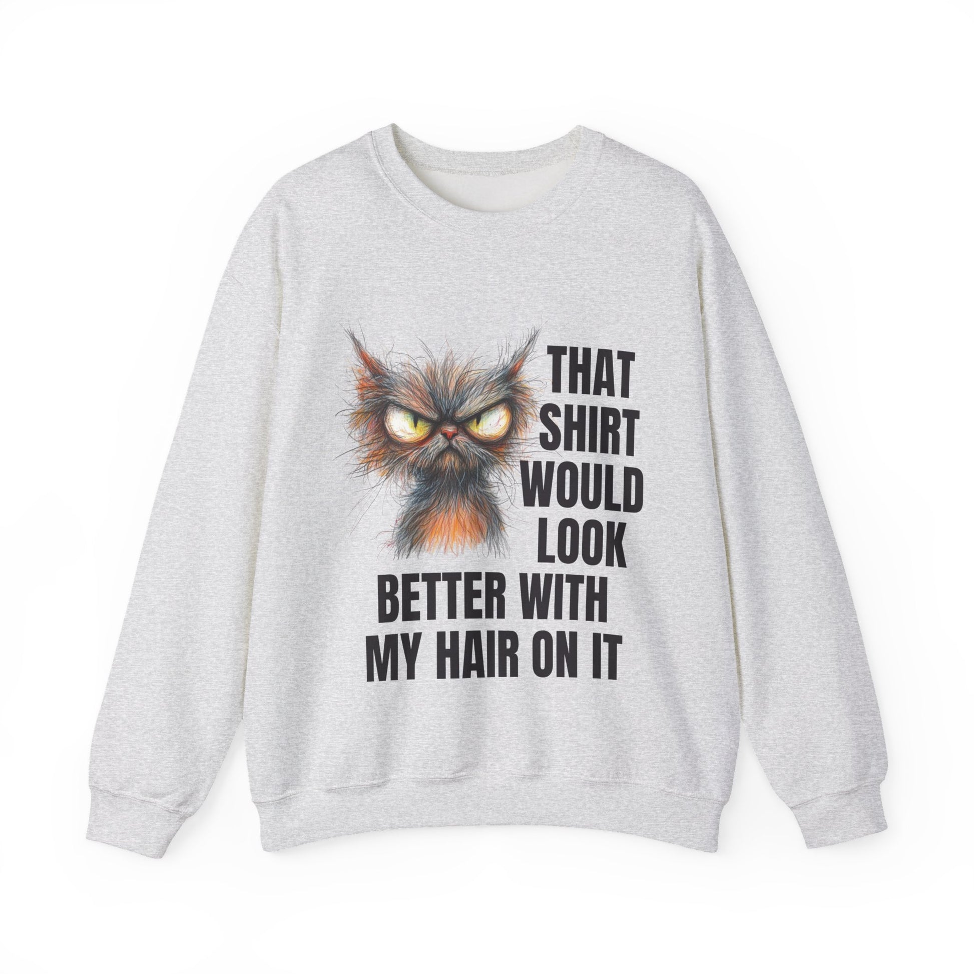 Cat owners know the truth: every outfit is just a canvas for fur. With a delightfully frazzled feline and a cozy fit, this sweatshirt lets you wear your cat’s contribution with pride — no lint roller required.